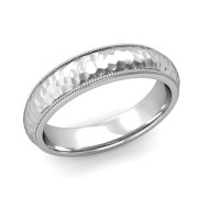 Comfort Fit Milgrain Wedding Band in 14k White or Yellow Gold, Hammered Finish, 5mm