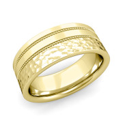 Double Milgrain Wedding Ring in 18k Gold Comfort Fit Band, Hammered Finish, 8mm