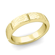 Swiss Cut Wedding Band in 18k Gold Hammered Finish Ring, 5mm