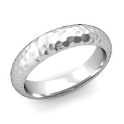 Dome Comfort Fit Wedding Band in 14k White or Yellow Gold, Hammered Finish, 5mm