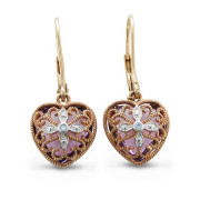 Heart Shaped Amethyst and Diamond Earrings in14k Rose Gold