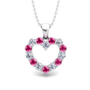 Heart Diamond and Pink Sapphire Necklace in 14k Gold Pendant