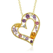 Multi-Gemstone and Diamond Heart Pendant in Milgrain 10k Yellow Gold, 1.50 cttw