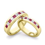 Matching Wedding Band in 18k Gold Princess Cut Diamond and Ruby Ring