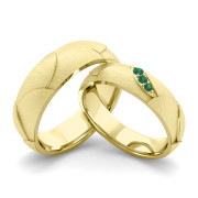 Brushed Finish Matching Wedding Band in 18k Gold 3 Stone Emerald Wedding Rings