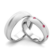 Brushed Finish Matching Wedding Band in Platinum Wave Ruby Wedding Rings