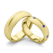 Satin Finish Matching Wedding Band in 18k Gold Wave Sapphire Wedding Rings