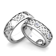 Matching Celtic Wedding Bands in Platinum Diamond Comfort Fit Ring