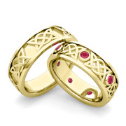Matching Celtic Wedding Bands in 18k Gold Ruby Comfort Fit Ring