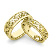 Matching Celtic Wedding Bands in 18k Gold Milgrain Yellow Sapphire Ring
