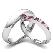 Matching Wedding Band in Platinum Curved Diamond and Ruby Ring