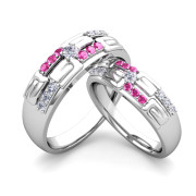 Matching Wedding Ring in 14k Gold Unique Diamond Pink Sapphire Wedding Band