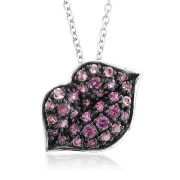 10k Gold Natural Multi-Gemstone Lips Necklace, 0.60 cttw