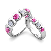 His and Hers Matching Wedding Band in 14k Gold 5 Stone Diamond and Pink Sapphire Ring