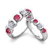 His and Hers Matching Wedding Band in Platinum 5 Stone Diamond and Ruby Ring