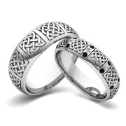 Matching Wedding Band in Platinum Black and White Diamond Celtic Wedding Ring