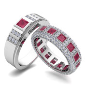 Matching Wedding Band in 14k Gold Princess Cut Ruby and Diamond Ring