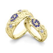 Matching Wedding Ring in 18k Gold Swirl Diamond and Sapphire Wedding Band