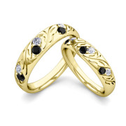 His and Hers Matching Wedding Band in 18k Gold: Black and White Diamond