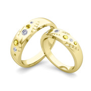 Matching Wedding Ring Set: Flush Set Diamond and Yellow Sapphire Ring in 18k Gold