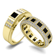 Matching Wedding Band in 18k Gold Princess Cut Black Diamond and Diamond Ring