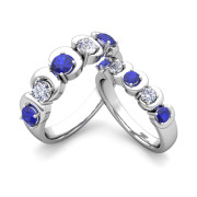 His and Hers Matching Wedding Band in Platinum 5 Stone Diamond and Sapphire Ring