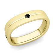 Black Diamond Wedding Ring in 18k Gold Brushed Square Wedding Band, 5mm