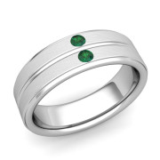 Emerald Wedding Anniversary Ring in Platinum Brushed Flat Wedding Band, 6.5mm