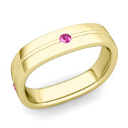 Pink Sapphire Wedding Ring in 18k Gold Shiny Square Wedding Band, 5mm