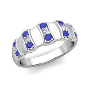 Geometric Diamond and Sapphire Mens Wedding Ring Band in Platinum, 8mm