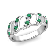 Geometric Diamond and Emerald Mens Wedding Ring Band in Platinum, 8mm