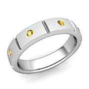 Swiss Cut Yellow Sapphire Wedding Ring in 14k Gold Brushed Ring, 5mm