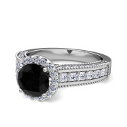 Heirloom Black and White Diamond Engagement Ring in 14k Gold, 5mm