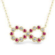 Milgrain Diamond and Pink Sapphire Necklace in 18k Gold Infinity Pendant