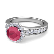 Milgrain Diamond and Ruby Halo Engagement Ring in Platinum, 5mm