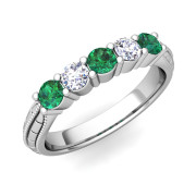 Milgrain Emerald and Diamond Wedding Band in 14k Gold 5 Stone Ring, 3mm