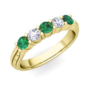 Milgrain Emerald and Diamond Wedding Band in 18k Gold 5 Stone Ring, 3mm