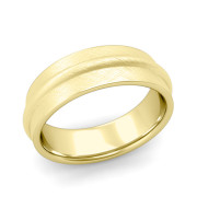 Ridged Wedding Band in 18k Gold Mixed Brushed Finish Comfort Fit Band, 7mm