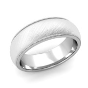 Comfort Fit Milgrain Wedding Band in 14k White or Yellow Gold, Mixed Brush, 7mm
