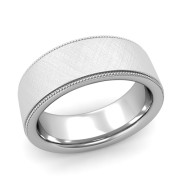 Milgrain Flat Wedding Ring in 14k Gold Comfort Fit Band, Mixed Brushed Finish, 8mm