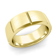 Swiss Cut Wedding Band in 18k Gold Mixed Brushed Finish Ring, 8mm