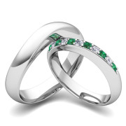 Matching Wedding Band in 14k Gold Curved Diamond and Emerald Ring