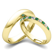 Matching Wedding Band in 18k Gold Curved Diamond and Emerald Ring