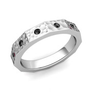 Square Diamond Wedding Anniversary Ring in Platinum Hammered Ring, 4mm