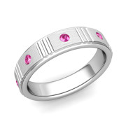 Geometric Pink Sapphire Wedding Ring in 14k Gold Brushed Ring, 5mm