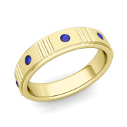 Geometric Sapphire Wedding Anniversary Ring in 18k Gold Brushed Ring, 5mm