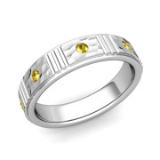 Geometric Yellow Sapphire Wedding Ring in 14k Gold Hammered Ring, 5mm