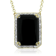 Radiant Cut Black Onyx and White Diamond Necklace in 14k Yellow Gold, 6.70 cttw