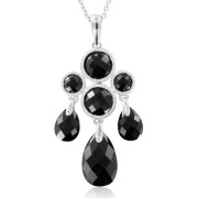 Briolette Black Onyx Drop Necklace with 14k White Gold Chain, 5.18 cttw