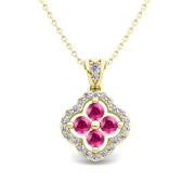 Diamond and Pink Sapphire Pendant in 18k Gold Clover Necklace